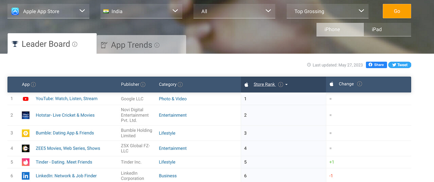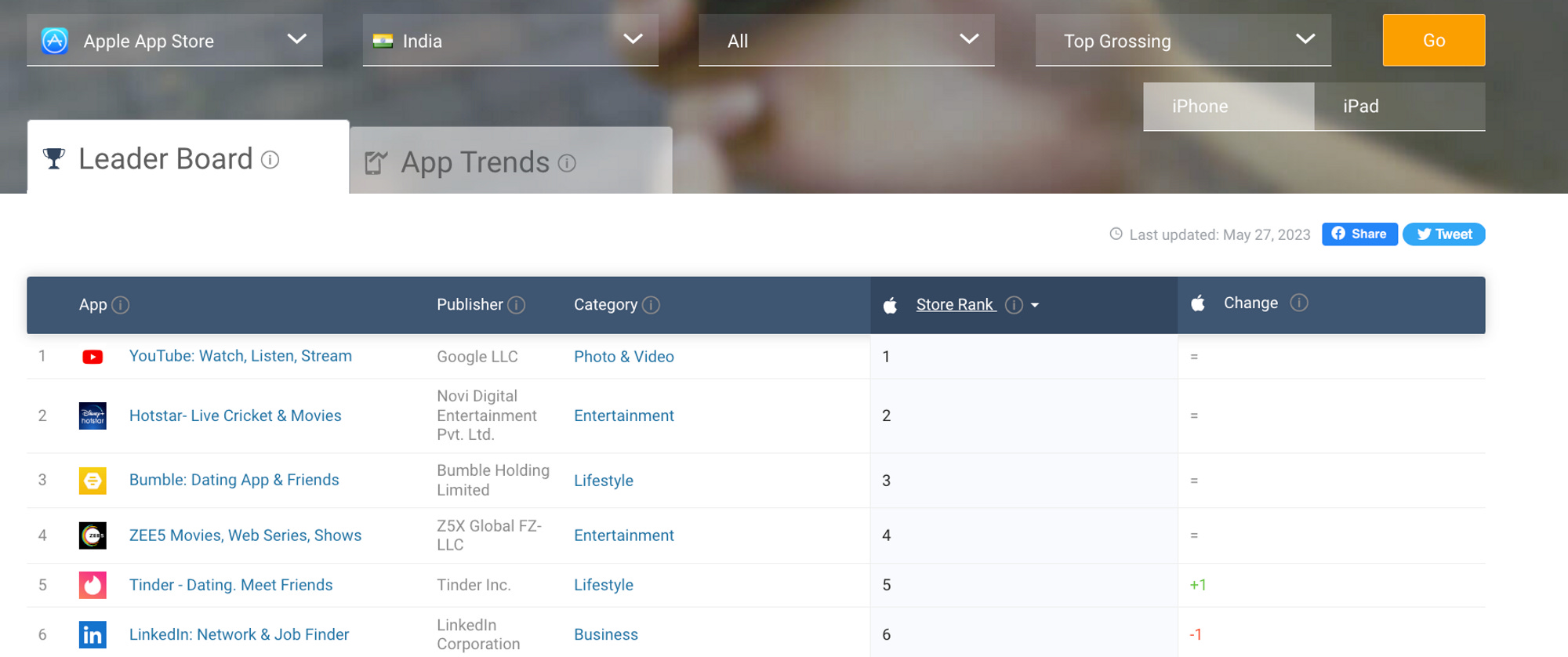 Even after that- Tinder and Bumble have proven to be amongst the highest grossing apps in the country. But is that significant? Let’s explore this a bit later.