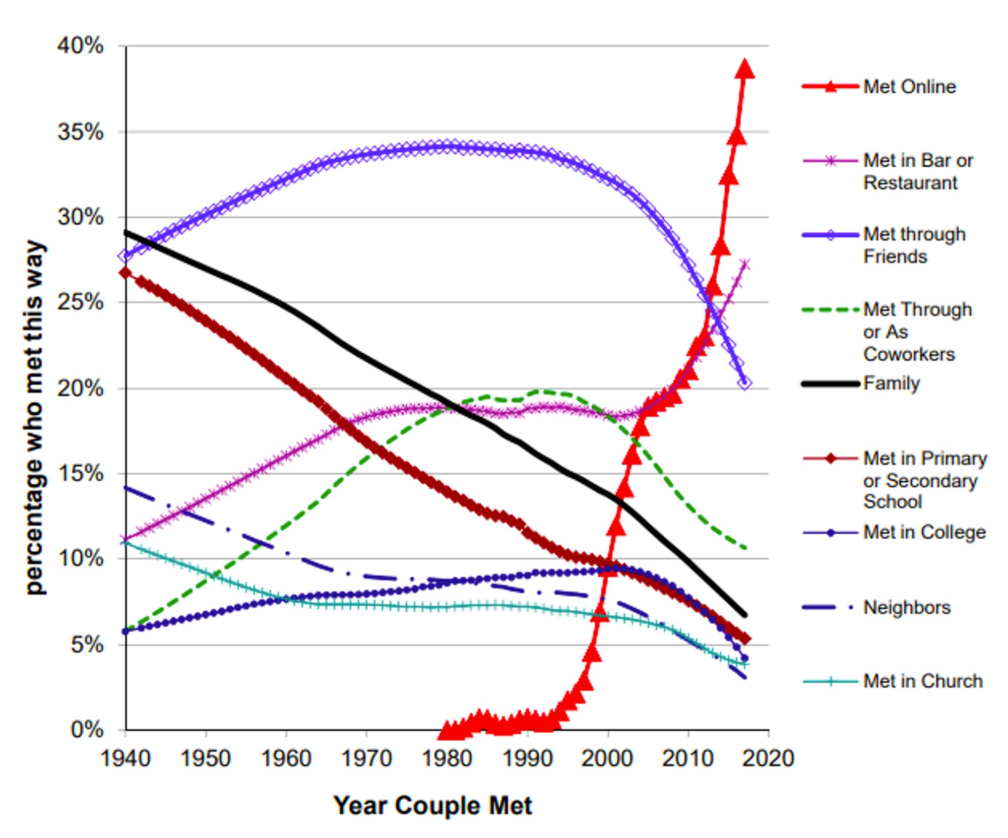 Before the advent of online matchmaking, individuals mainly relied on traditional offline ways of meeting other individuals seeking romantic relationships- matchmaking agencies, social events, family, classified ads etc. There were two key challenges- double co-incidence of needs [whether the other person was looking for a relationship] and limited pool of individuals.