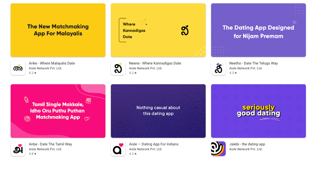 Aisle is taking an interesting approach to regional matchmaking- by creating regional apps. They have already launched 4 regional apps, focusing on Malyali, Telegu, Tamil and Kannadigas.