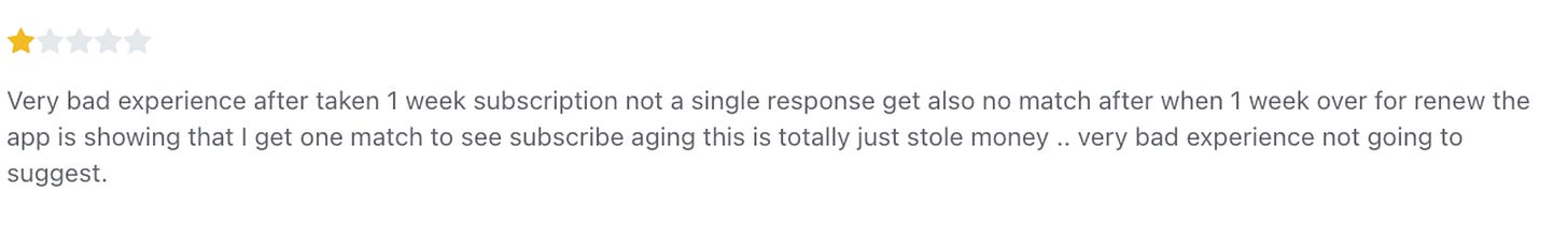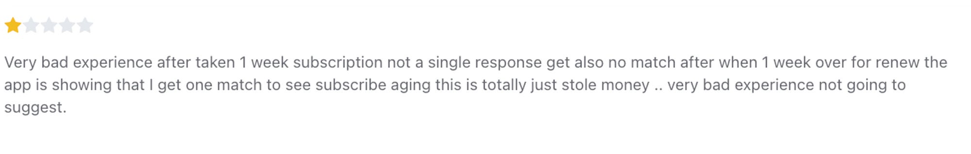 This also leads to poor experience for male users since they don’t get matches and they go on to give a low rating to the app.